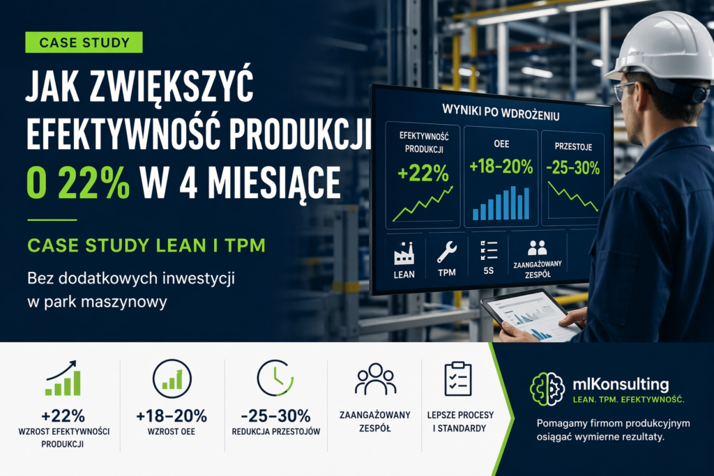 Zobacz, jak zwiększyć efektywność produkcji o 22% w 4 miesiące dzięki Lean i TPM. Praktyczne case study z produkcji.